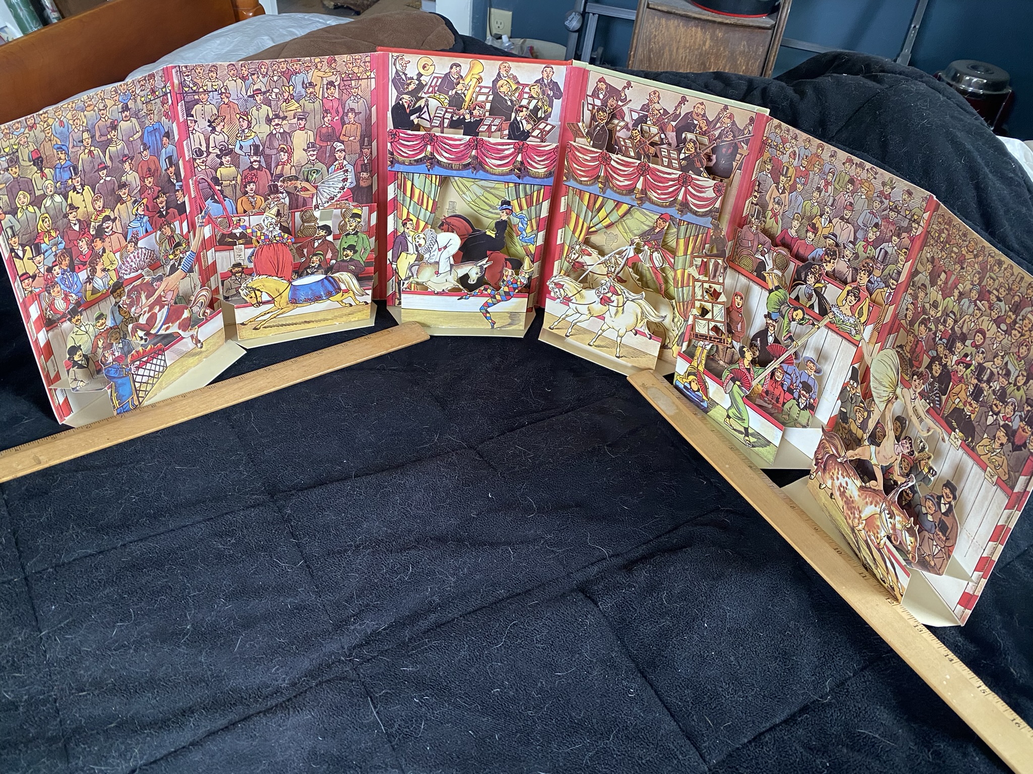 folds down to reveal several layers, that in composite make a 3D representation of a circus scene. As an aside, the highest award