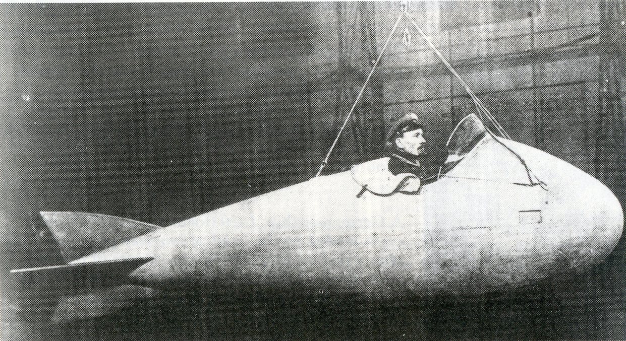 duralumin, and was lowered hundreds of feet by cable from the zeppelin.